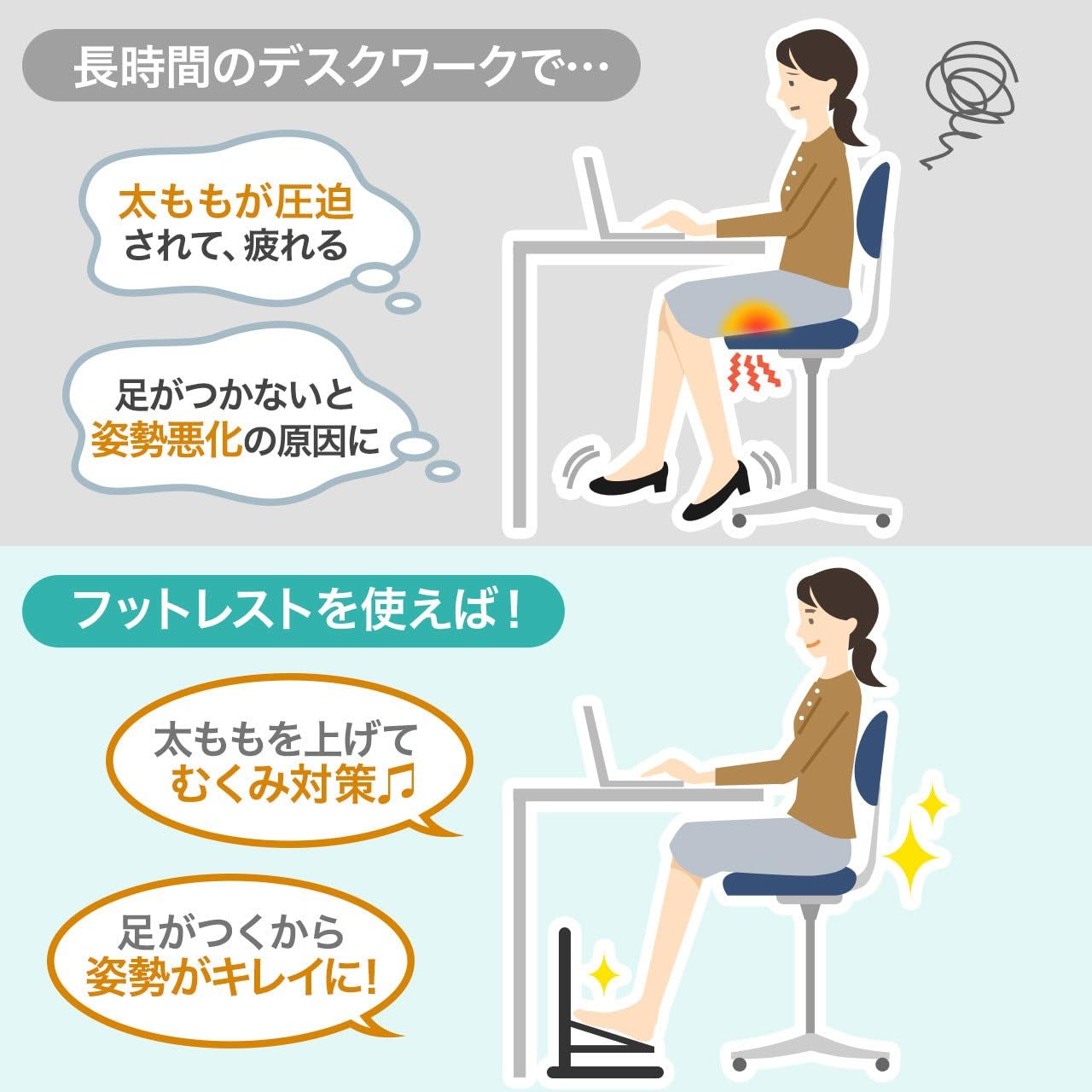長時間坐在辦公桌前,雙腳懸空或姿勢不良,容易造成腿部與腰部疲勞。