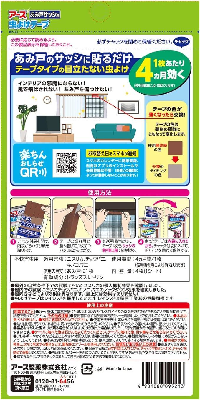 EARTH 窗戶防蚊貼片EX 4片裝×4個月用 Amido4片 無臭型 驅蟲劑