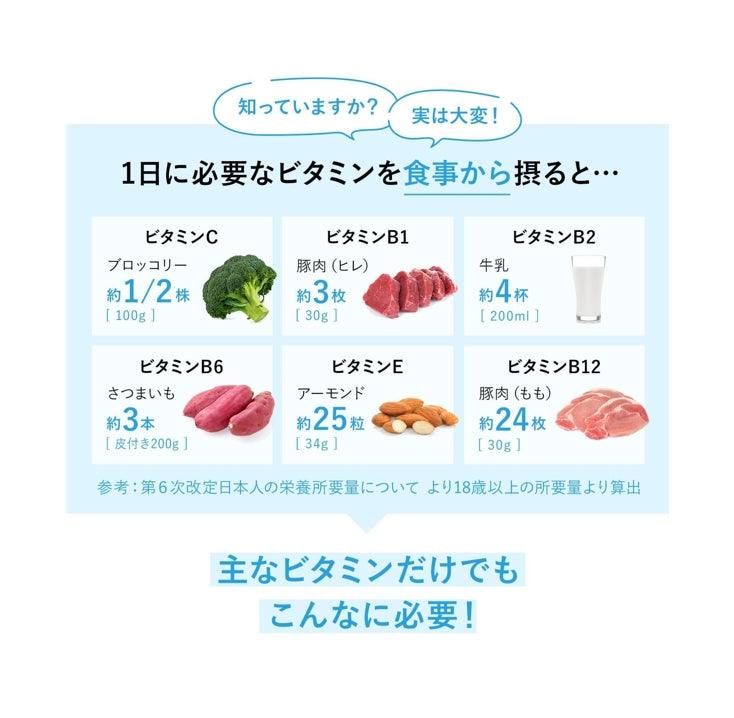 【均衡補充12種維生素】均衡補充飲食中容易缺乏的一日維生素**。此外,還含有支持維生素的「紫藤茶多酚」和「輔酶Q10」。