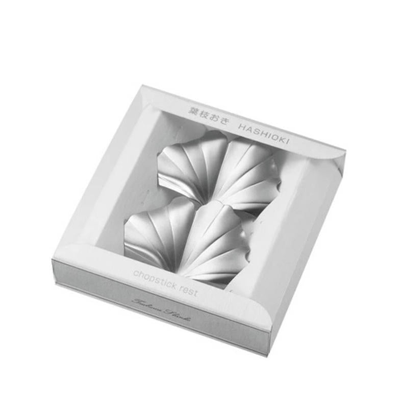 HUTLERY 銀杏葉造型筷架 2入禮盒組|日本燕三條製 銀色金屬餐桌配件