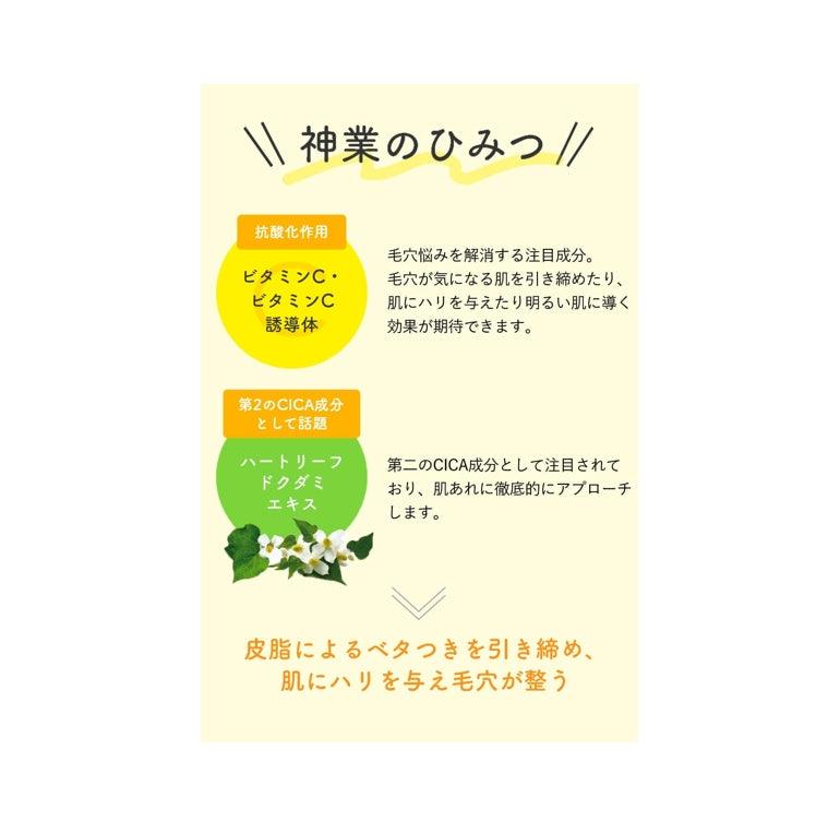 [Point.1 含有10%高維生素C] 主要成分溫和親膚,消除毛孔問題。 可望收緊因皮脂而容易黏膩的肌膚,使毛孔堵塞的肌膚變得緊緻光滑。
