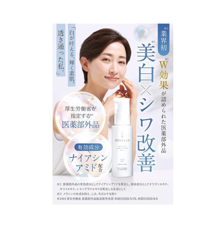 奧賽羅乳液是一個優質的美白和老化護理乳液,是針對斑點,皺紋和下垂肌膚,經過反覆的研究而開發的,添加了美容皮膚科醫生也很注目的有效成分"煙酰胺"。有效成分改善美白×皺紋。Othello乳液是一種準藥物,已被厚生勞動省認可為有效。 此外,它還含有4種老化護理成分和5種保濕成分,相互作用。保濕力也很好。不使用酒精,礦物油,對羥基苯甲酸酯,合成著色劑,合成香料,紫外線吸收劑。