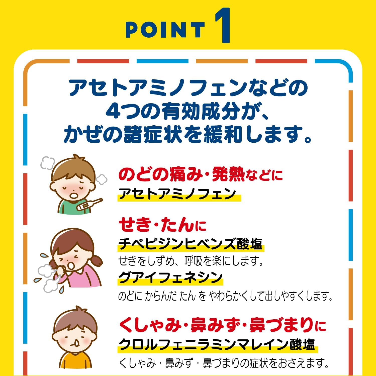 ◆兒童喜愛的草莓風味,易於飲用的微粒藥劑,不含妨礙睡眠的咖 啡因等成分,適合兒童服用的配方設計。