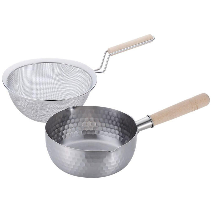 日本製 和平FREIZ 彩食庵 雪平鍋+木柄濾網組 18cm|IH電磁爐可用|不鏽鋼日式湯鍋 SM-9549