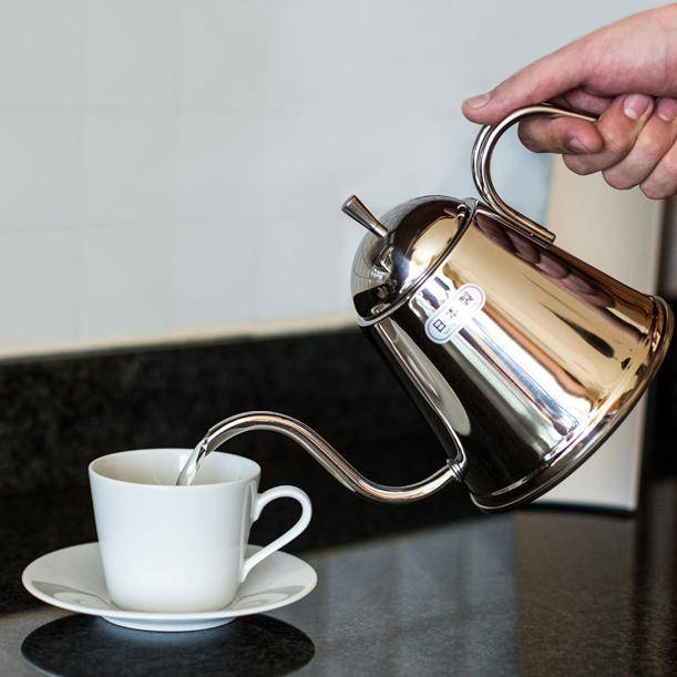 細口壺嘴設計讓水流能穩定、精準地沿手沖路徑注出,是手沖咖啡、茶水萃取及生活熱水的最佳入門款。
