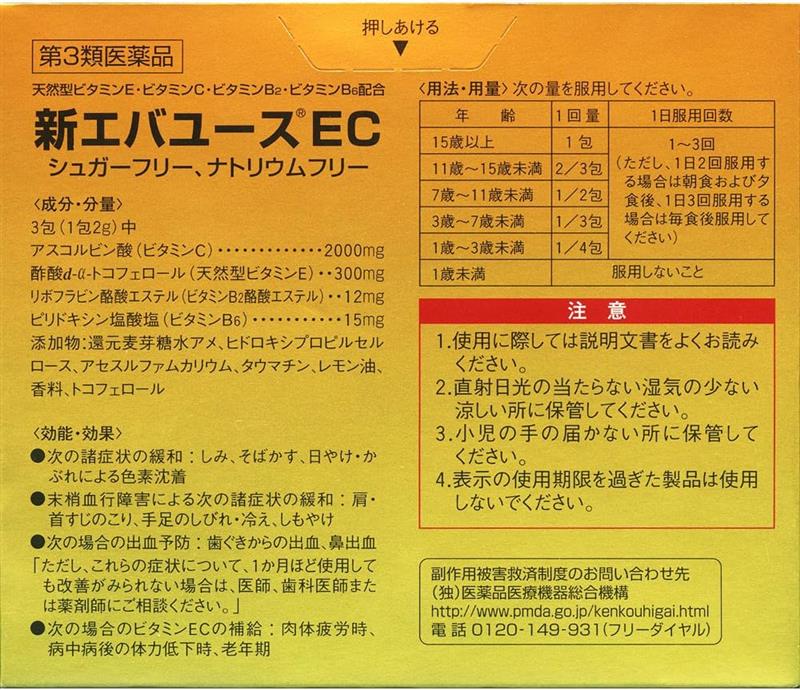 4. 每3包(每包2公克)含有2000毫克維生素C和300毫克維生素E。