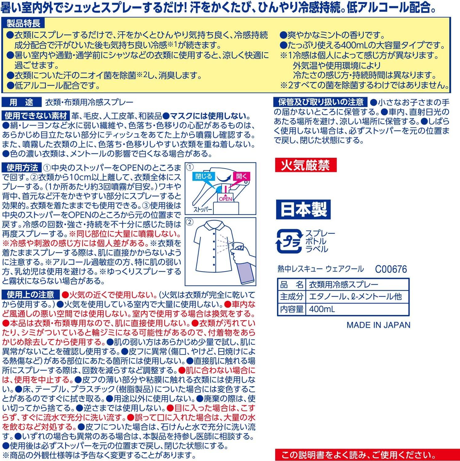 Wear Cool 衣物清涼 涼感 持久噴霧 400ml